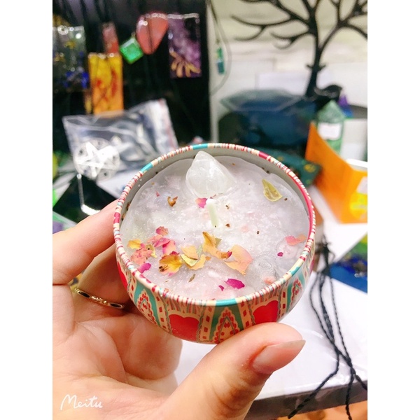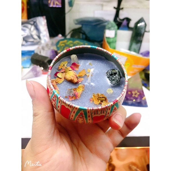 Nến spell đen/ trắng đá thanh tẩy tinh dầu hoa khô