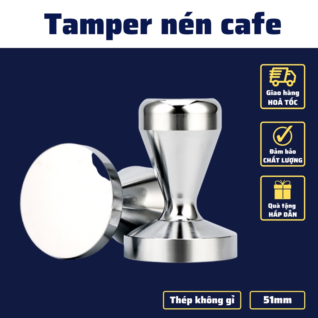 Tay Nén Tamper 51mm dụng cụ nén cà phê pha Espresso cafe Arabica Inox cao cấp tay nén café đường kính 49-51-53-58m+ Chất Liệu : Inox 304 Cao Cấp