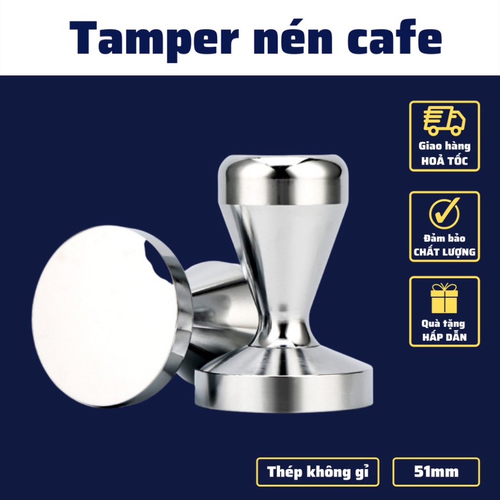 Tay Nén Tamper 51mm dụng cụ nén cà phê pha Espresso cafe Arabica Inox cao cấp tay nén café đường kính 49-51-53-58m