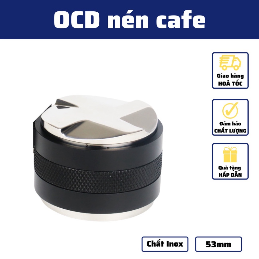 Tay nén Tamper OCD 53mm dụng cụ nén cà phê 3 lưỡi pha Espresso cafe Arabica Inox cao cấp đường kính 51-53-58mm