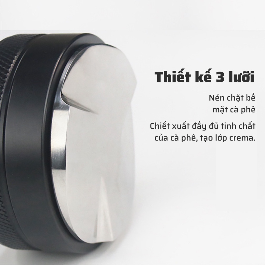 Tay nén Tamper OCD 58mm dụng cụ nén cà phê 3 lưỡi pha Espresso cafe Arabica Inox cao cấp đường kính 51-53-58mm+ Chất Liệu : Inox Cao Cấp [ Thép Không Gỉ ]