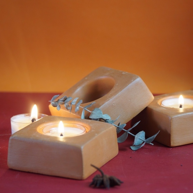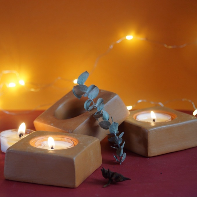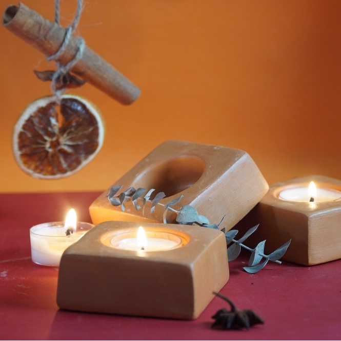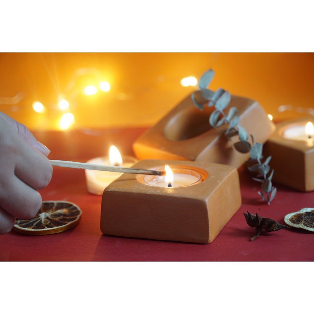 Nhà cửa & Đời sống > Trang trí nhà cửa > Nến & đồ đựng nến || Đế Bỏ Nến Tealight Đất Nung Hình Vuông - DN34Còn hàng
