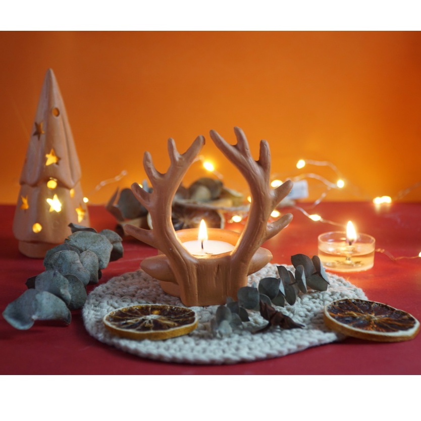Nhà cửa & Đời sống > Trang trí nhà cửa > Nến & đồ đựng nến || Đế Bỏ Nến Tealight Đất Nung - Sừng Tuần Lộc - DN39Còn hàng