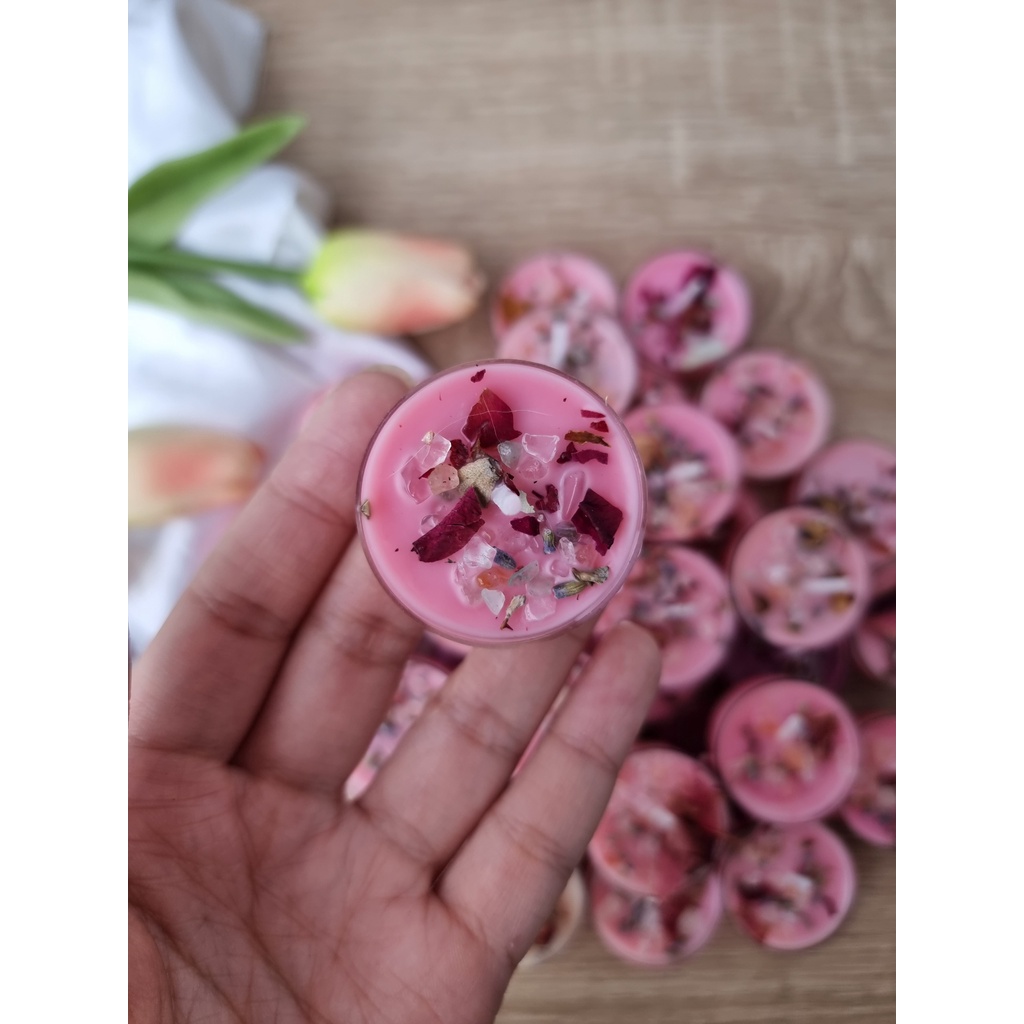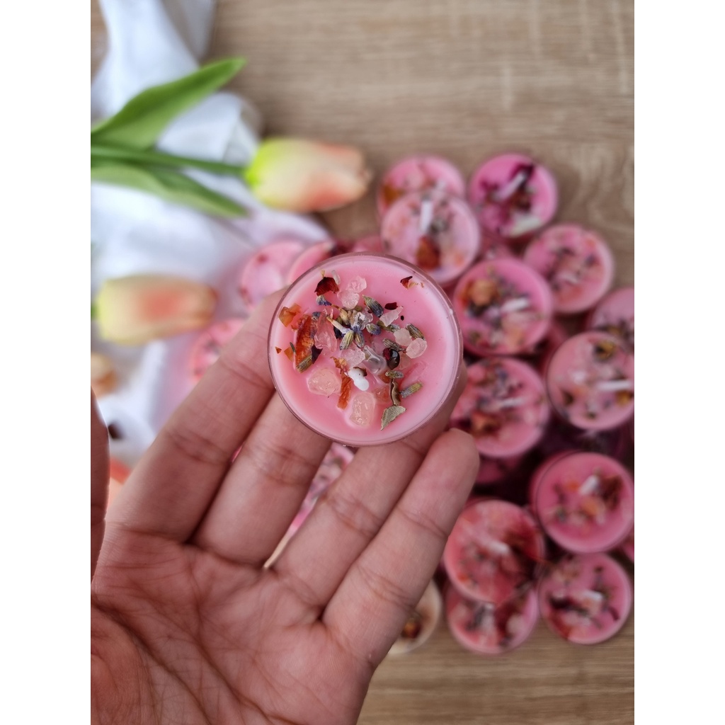Giới thiệu Nến tealight, nến thơm năng lượng Candle healing kết hợp với đá thach anh và thảo mộc