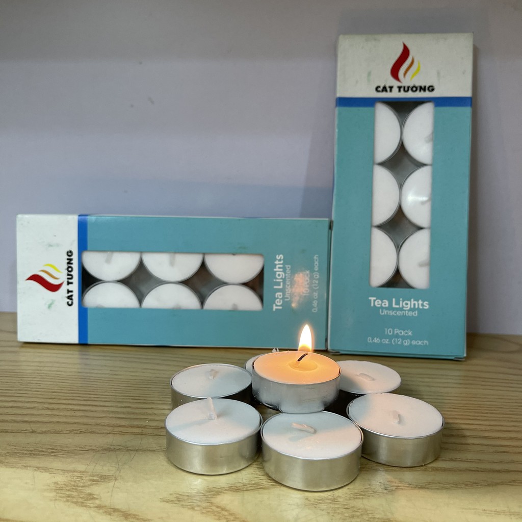 Nến tealight trắng không mùi, vỉ 10 viên, mỗi viên đốt được 4h Tinh Dầu 100 Shop