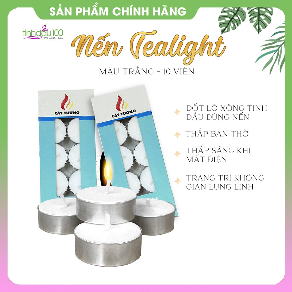 Giới thiệu Nến tealight trắng không mùi, vỉ 10 viên, mỗi viên đốt được 4h Tinh Dầu 100 Shop