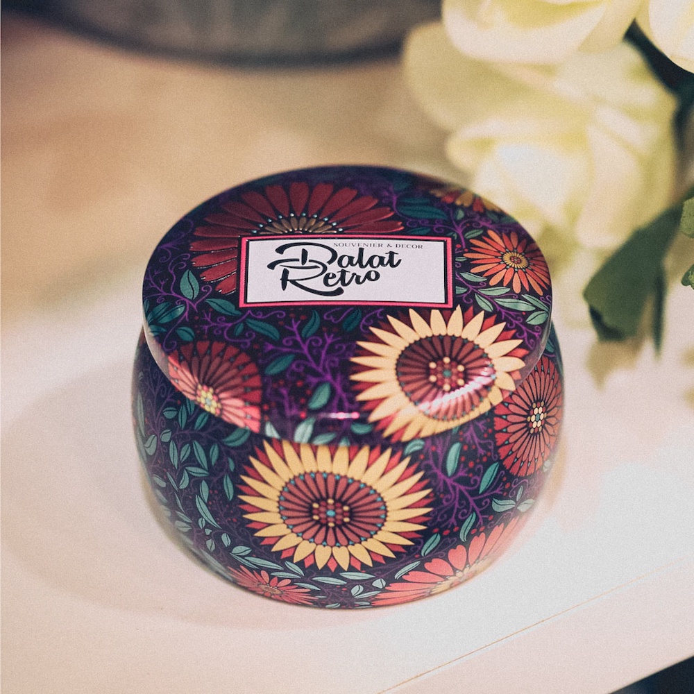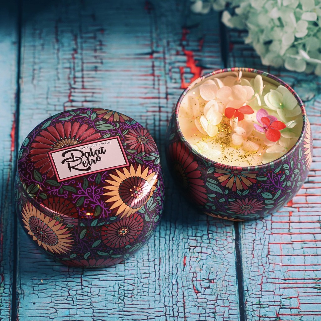 Nhà cửa & Đời sống > Trang trí nhà cửa > Nến & đồ đựng nến || Nến thơm, 120g, hộp, mẫu hộp thiếc hoa văn, hương rose, Dalat RetroCòn hàng