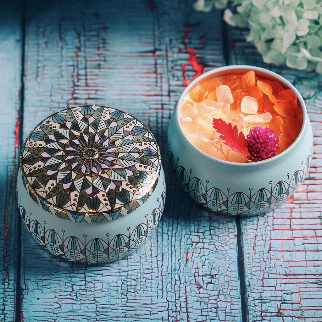 Nhà cửa & Đời sống > Trang trí nhà cửa > Nến & đồ đựng nến || Nến thơm, 120g, hộp, mẫu hộp thiếc hoa văn, hương ocean, Dalat RetroCòn hàng