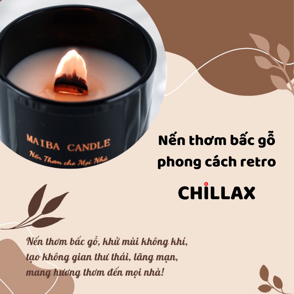 Nến thơm bấc gỗ CHILLAX thơm phòng sáp đậu nành tự nhiên an toàn không khói phong cách cổ điển NTBG