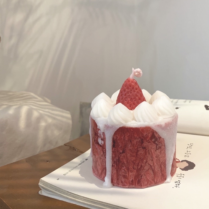 Nến thơm bánh kem dâu tây lớn giúp trang trí, lọc không khí và thư giãn