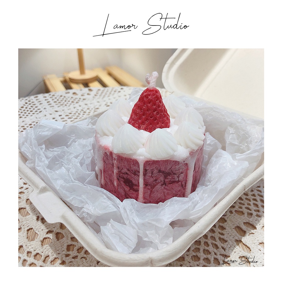 Nến thơm bánh kem dâu tâyĐược làm hoàn toàn từ sáp cọ tự nhiên, không độc hại