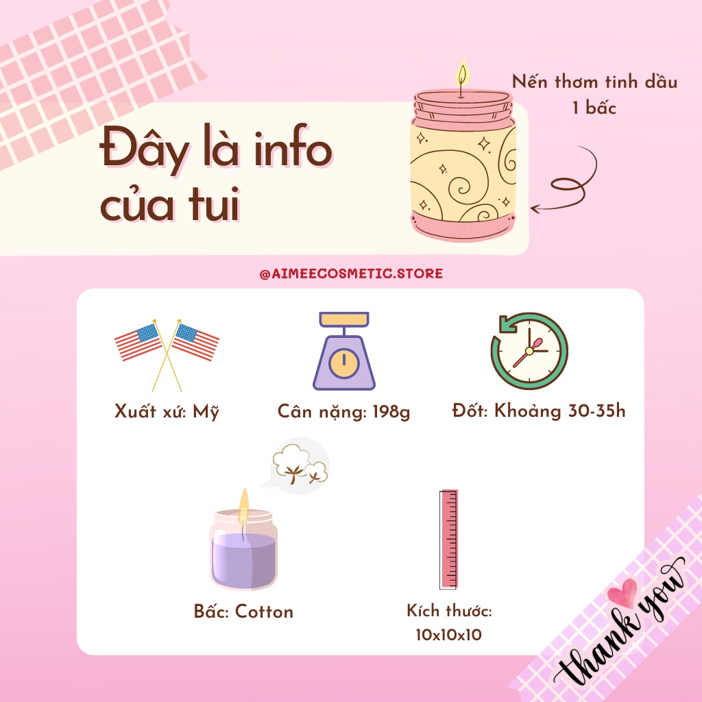 ♥️ Mùi hương: Hiện tại nhà AIMÉE đang có có mùi hương: ( NẾN NHÀ MÌNH CÓ HƠN 50 MÙI HƯƠNG, NÊN BẠN CÓ THỂ XEM THÊM MÙI Ở NHỮNG BÀI NẾN KHÁCH Ạ )