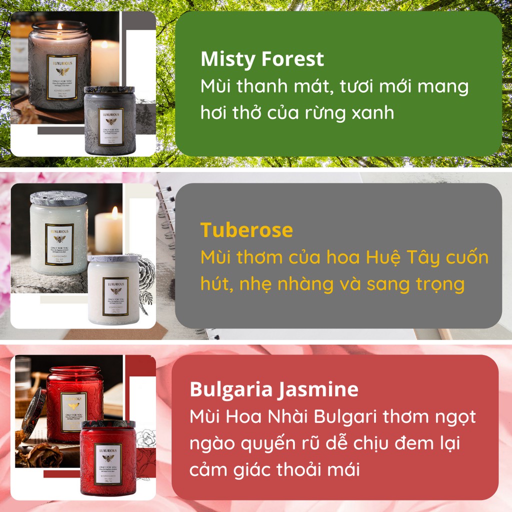 Nến Thơm Candle Cup Thơm Phòng Ngủ Sáp Thơm Tinh Dầu Thiên Nhiên Không Khói Sang Trọng Luxurious NEN01