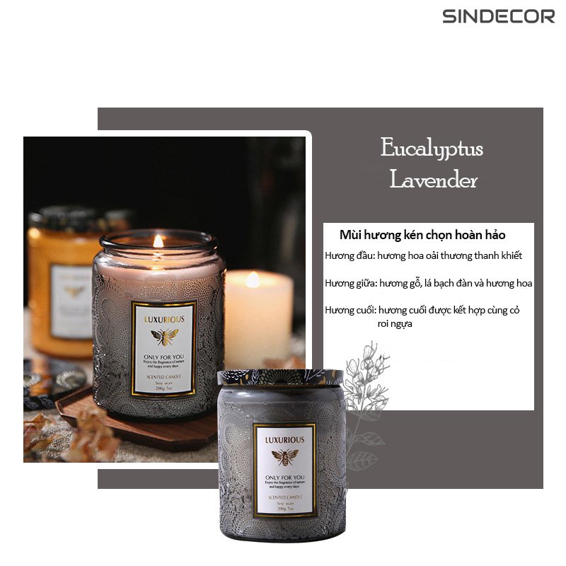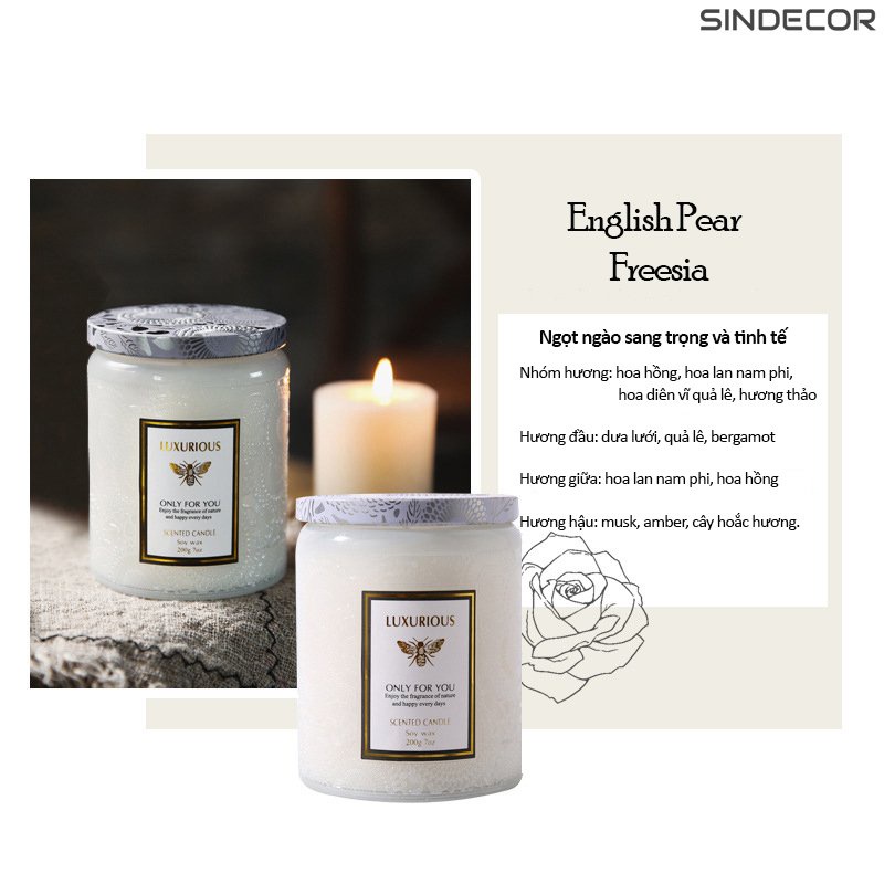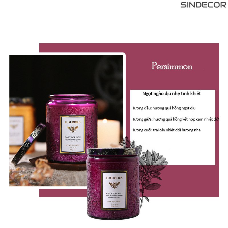 Nến thơm candle cup thủy tinh thơm phòng ngủ sáp thơm tinh dầu thiên thiên không khói sang trọng luxurious Sindecor200g