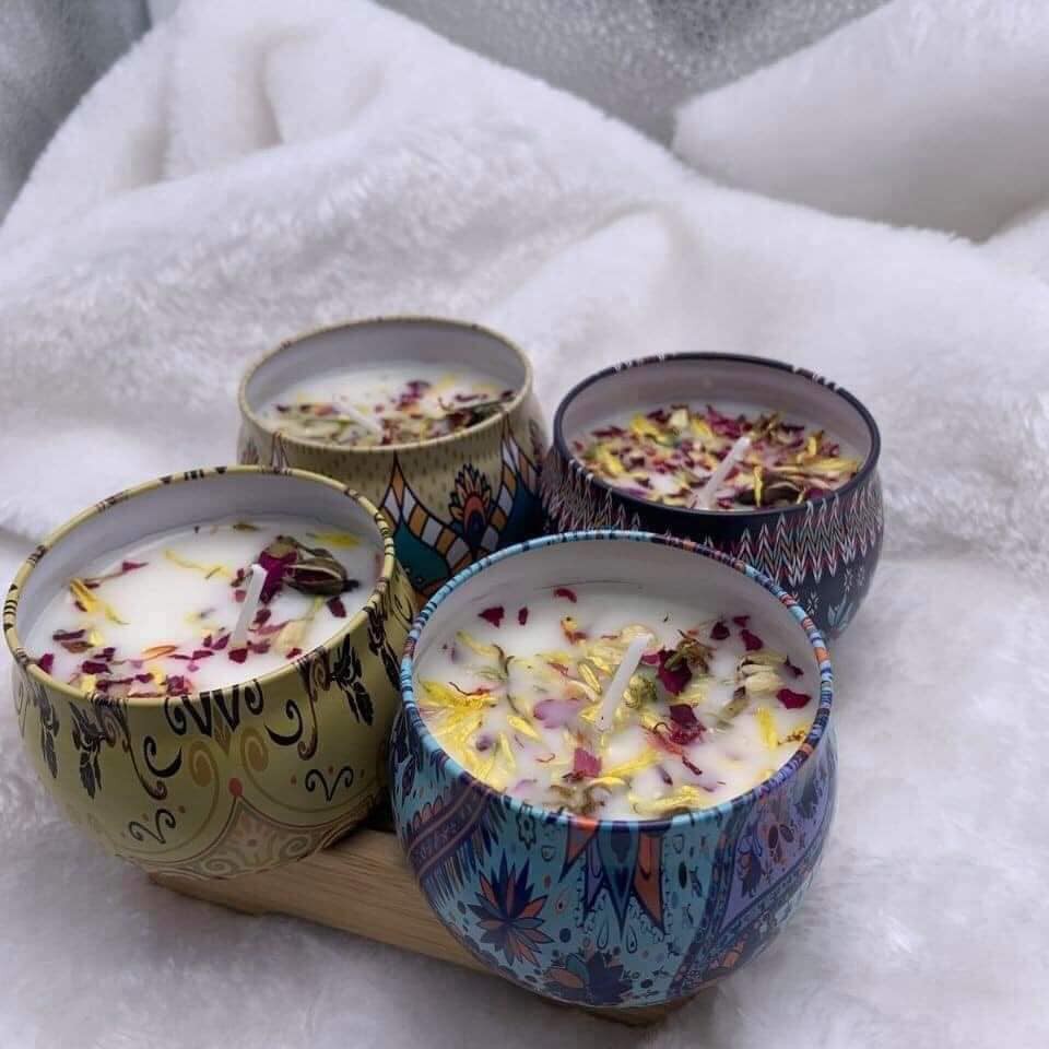 Giới thiệu Nến thơm cao cấp bằng sáp đậu nành, trang trí với hoa hồng, lavender, salem