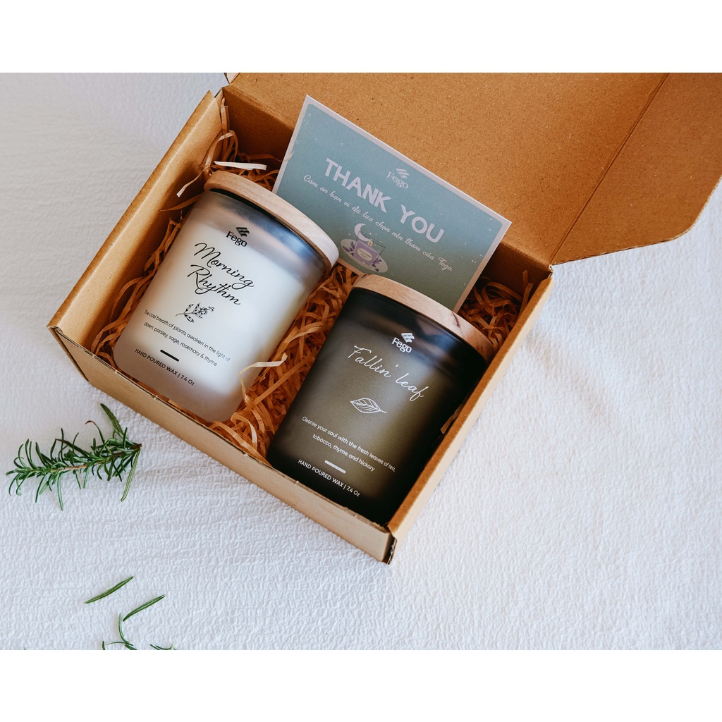 Nến thơm cao cấp Fego tinh dầu tự nhiênChu du trong khu rừng của bốn mùa, Fallin' leaf dịu dàng kể câu chuyện về những chiếc lá, trong đó lá trà đưa lời tươi mát, thyme thoảng hương tinh nghịch, tobacco lặng lẽ thâm trầm. Còn Morning Rhythm không gì hơn là tiếng gọi dịu ngọt của buổi sáng mùa thu trong Scarborough Fair bởi sự tụ hội của Rosemary, Thyme, Sage & Parsley.