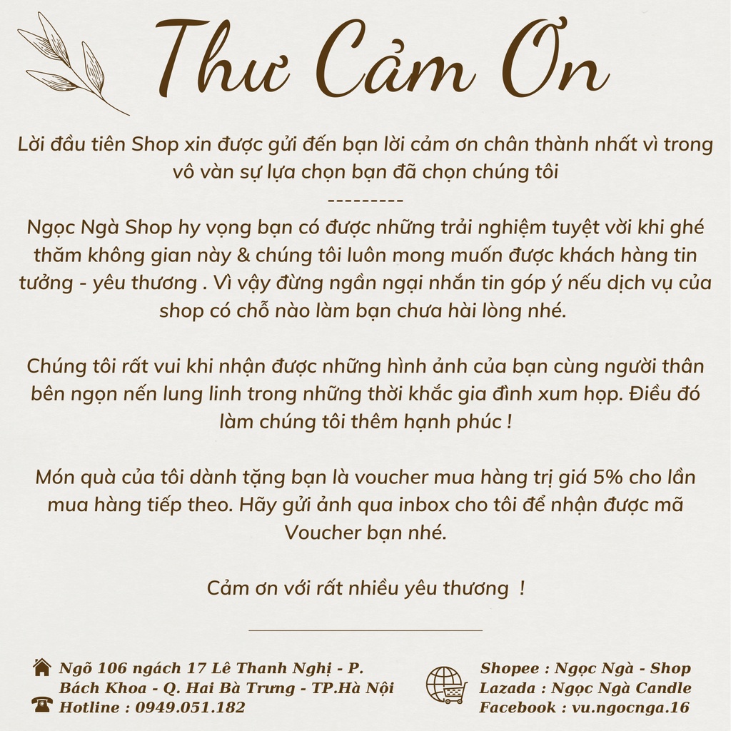 - Hương thơm trong nến được làm từ tinh dầu thơm chiết xuất từ các loại thảo mộc tự nhiên, mùi hương sang trọng