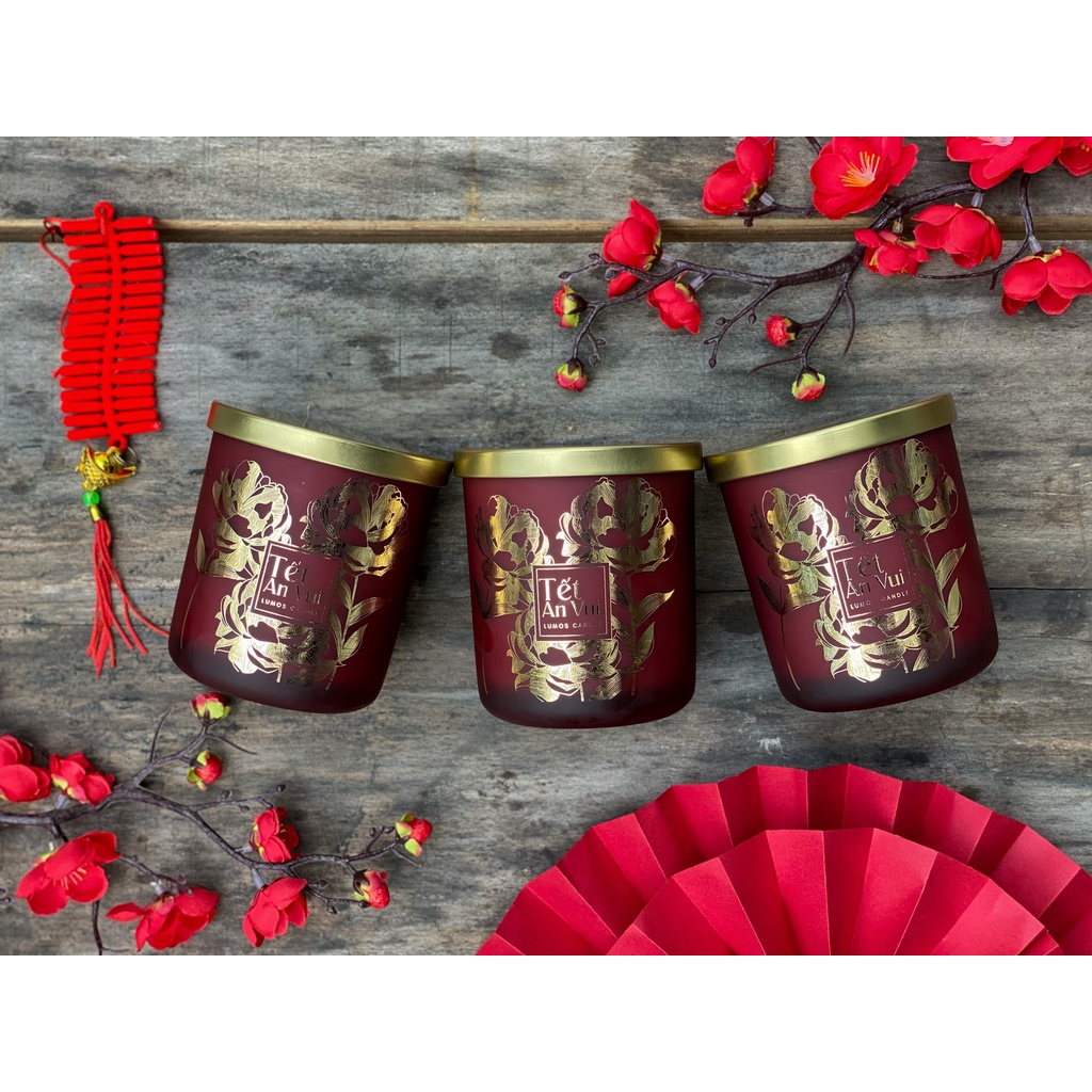 Nến Thơm Cao Cấp Lumos TẾT AN VUI (Hương gỗ sồi, đàn hương, tuyết tùng/ Hương hoa dành dành, nhài, quỳnh hương) – NT34