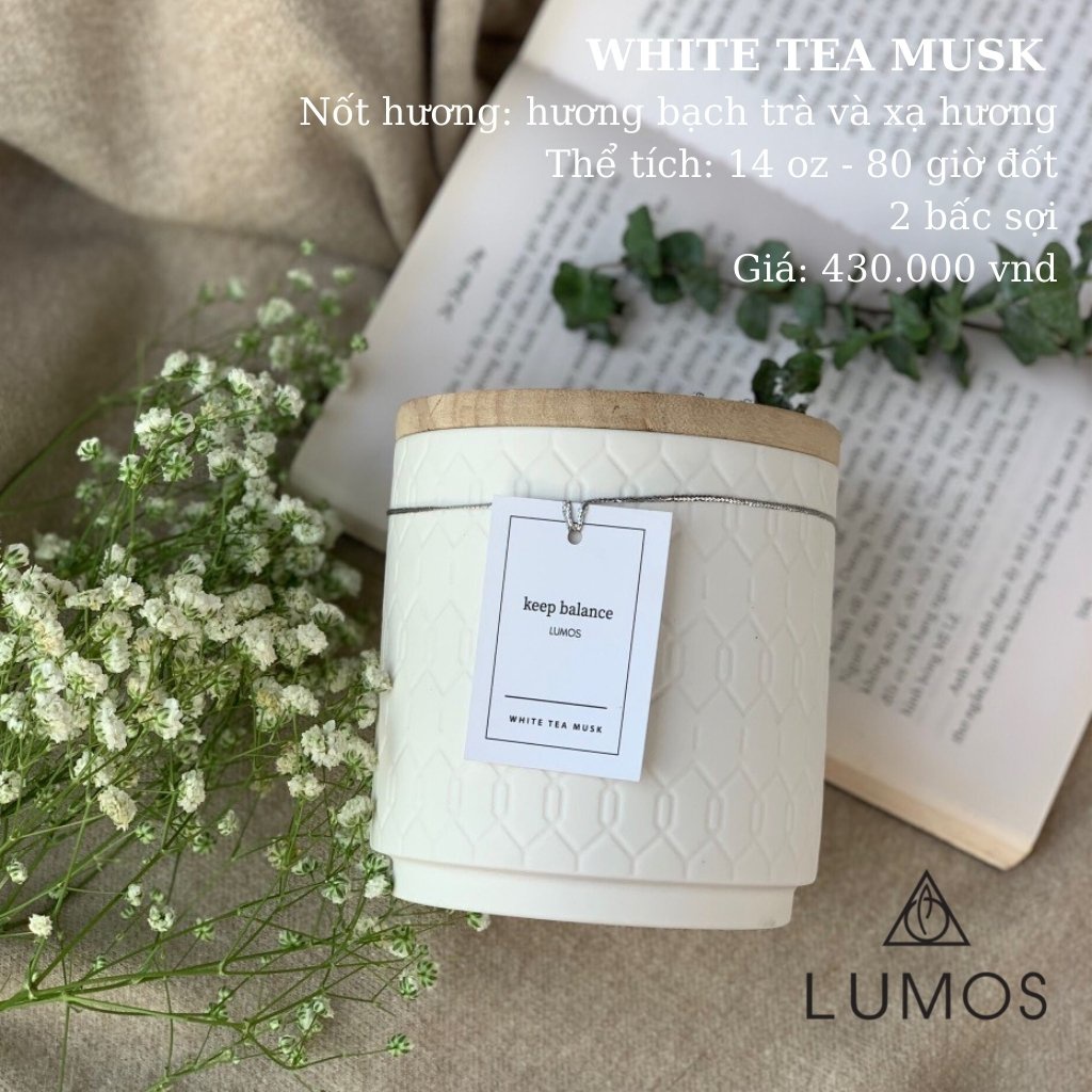 Nến Thơm Cao Cấp Lumos White Tea Musk (hương bạch trà, xạ hương) – NT23 - Nến trang trí - Đạt tiêu chuẩn Quốc Tế