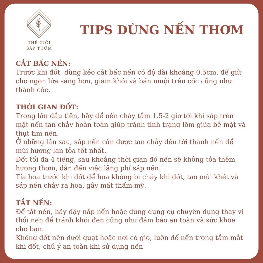 Nếu đốt nến lưu ý nến cắt ngắn bấc nến khoảng 5-7mm để khi đốt nến sẽ nhanh lên mùi thơm cũng như không bị ảnh hưởng đến hoa khô xung quanh.