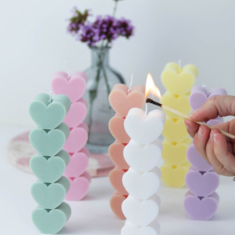 Nến Thơm Cây 5 Trái Tim Cực Xinh Làm Quà Tặng Tinh Dầu Thư Giãn Decor Hình Trái Tim 10*3.2cm | Oube Candle NT59