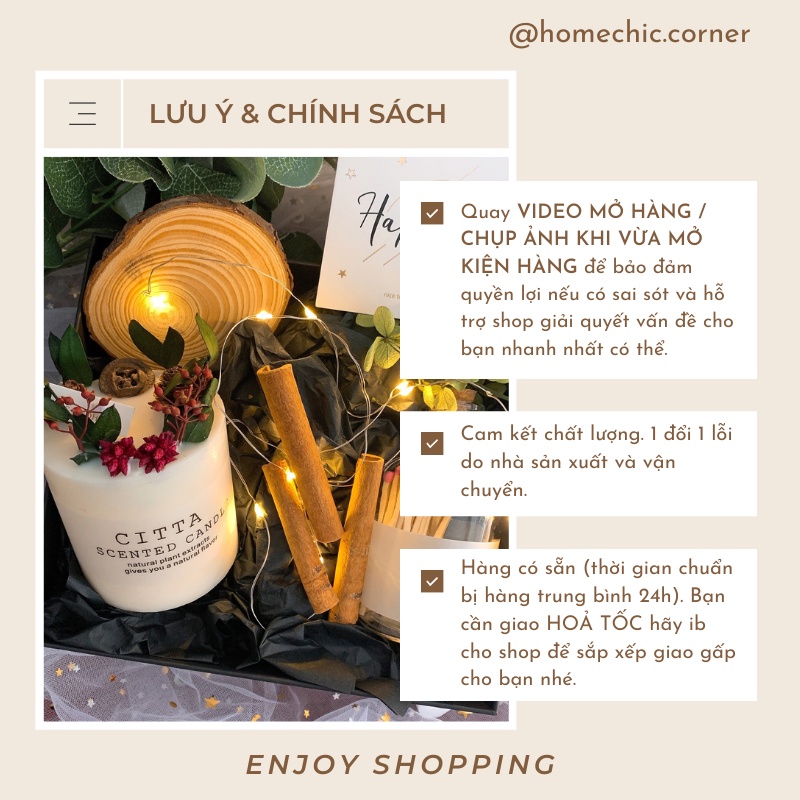 Nhà cửa & Đời sống > Trang trí nhà cửa > Nến & đồ đựng nến || Nến thơm Citta nến thơm hoa khô handmade cao cấp được làm từ sáp đậu nành tự nhiên | HOME CHIC CORNERCòn hàng