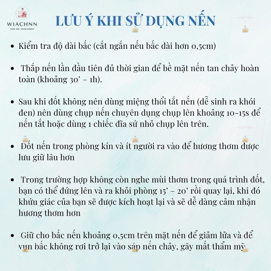 Sau mỗi lần đốt nên cắt tỉa phần bấc đã cháy đi chỉ để khoảng 5-7mm để lần sau đốt nến sẽ dễ cháy và tỏa hương nhanh hơn