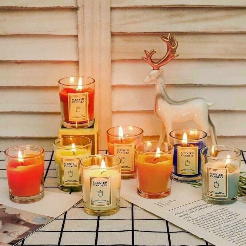 - Nến thơm cốc nhiều màu với mùi thơm thiên nhiên, giúp thư giãn đầu óc, giảm stress cuộc sống sau nhiều giờ làm việc căng thẳng