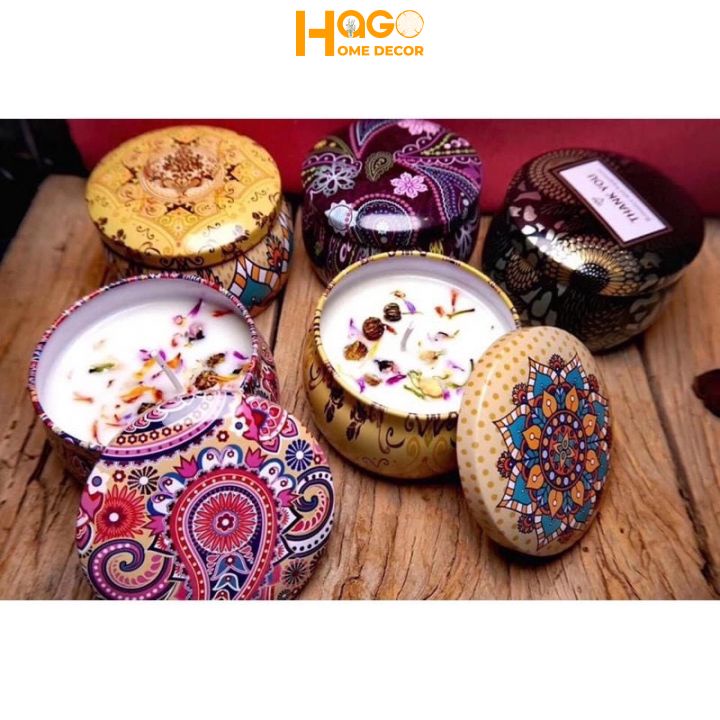 - Nến thơm có vỏ hộp làm từ thiếc trang trí bắt mắt, sang trọng