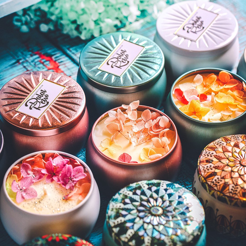 Thành phần: Sáp đậu nành tự nhiên, tinh dầu thiên nhiên, hoa khô trang trí, an toàn cho người sử dụng, không độc hại và thân thiện với môi trường