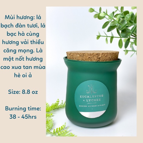 Nhà cửa & Đời sống > Trang trí nhà cửa > Nến & đồ đựng nến || Nến thơm Eucalyptus Lychee cao cấp nắp gỗ, size 8.8 oz 241gCòn hàng