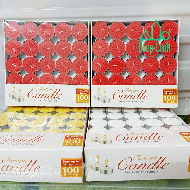 Nến thơm [HÀNG CAO CẤP], nến tealight không mùi, không khói hàng loại 1 hộp 100 viên cháy đến 4h