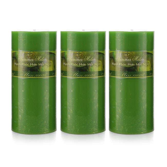 Nhà cửa & Đời sống > Trang trí nhà cửa > Nến & đồ đựng nến || Bộ nến thơm Hạnh Phúc 15 - Bộ 3 nến thơm D7H15 Miss Candle MIC0277 7 x 15 cm (Xanh lá, hương dưa gang tây)Còn hàng