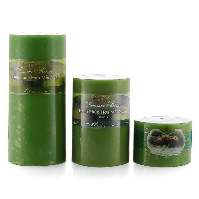 Nhà cửa & Đời sống > Trang trí nhà cửa > Nến & đồ đựng nến || Bộ nến thơm Hạnh Phúc 7 - Bộ 3 nến thơm D7H5, D7H10, D7H15 Miss Candle (Xanh lá, hương dưa gang tây)Còn hàng