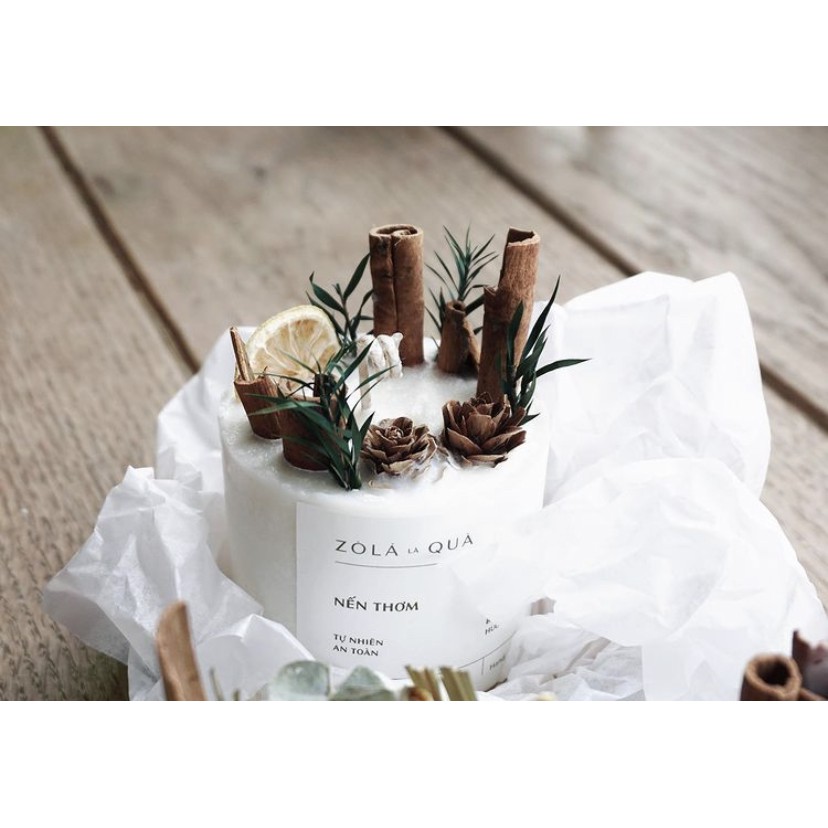Mẫu mã: Trang trí quế, chanh và lá cây. Nến hình trụ