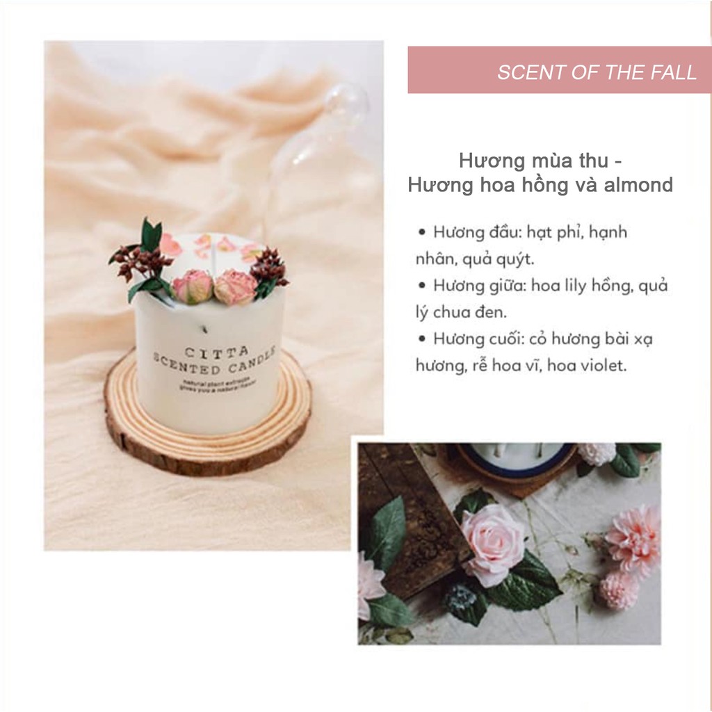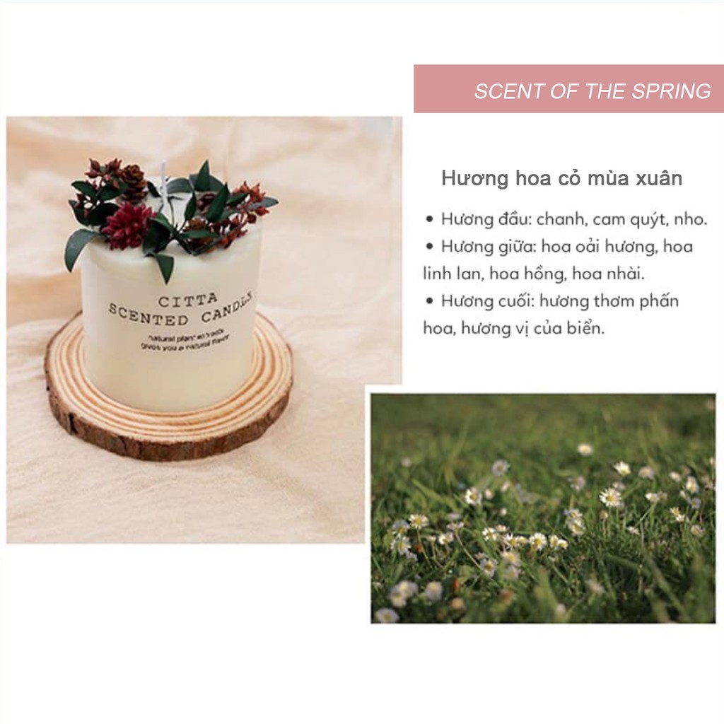 Nến thơm hoa khô hương bốn mùaThành phần: Soy wax, wax, dried flowers, dried herbs, fragrance oil