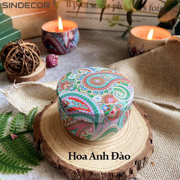 - Nến thơm có vỏ hộp làm từ thiếc trang trí bắt mắt, sang trọng