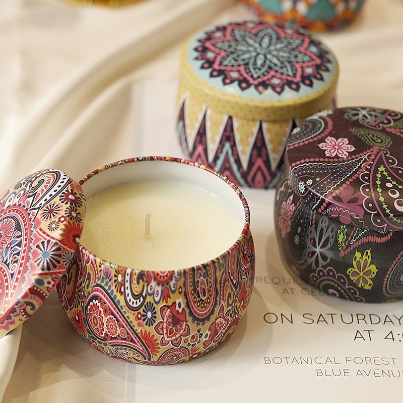 - Nến thơm có vỏ hộp làm từ thiếc trang trí bắt mắt, sang trọng