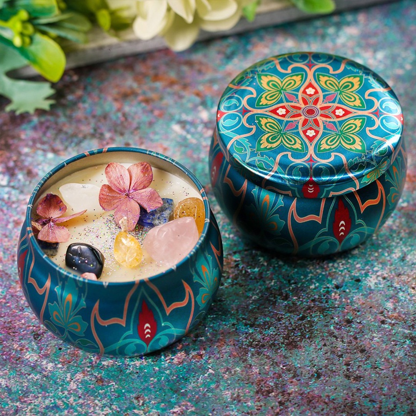 - Nến thơm có vỏ hộp làm từ thiếc trang trí bắt mắt, sang trọng.