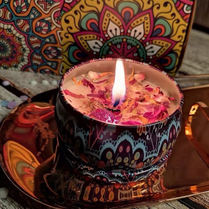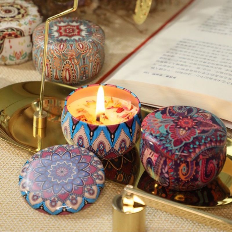 - Nến thơm có vỏ hộp làm từ thiếc trang trí bắt mắt, sang trọng