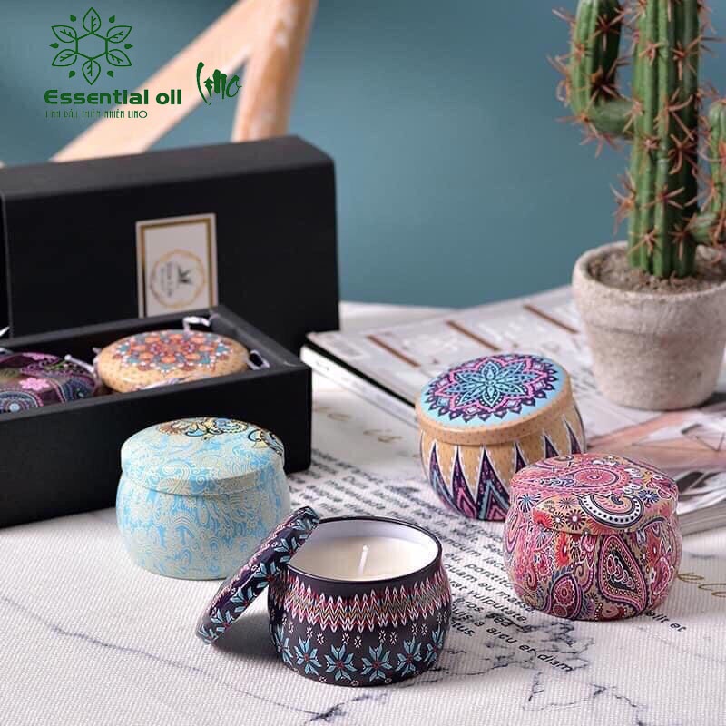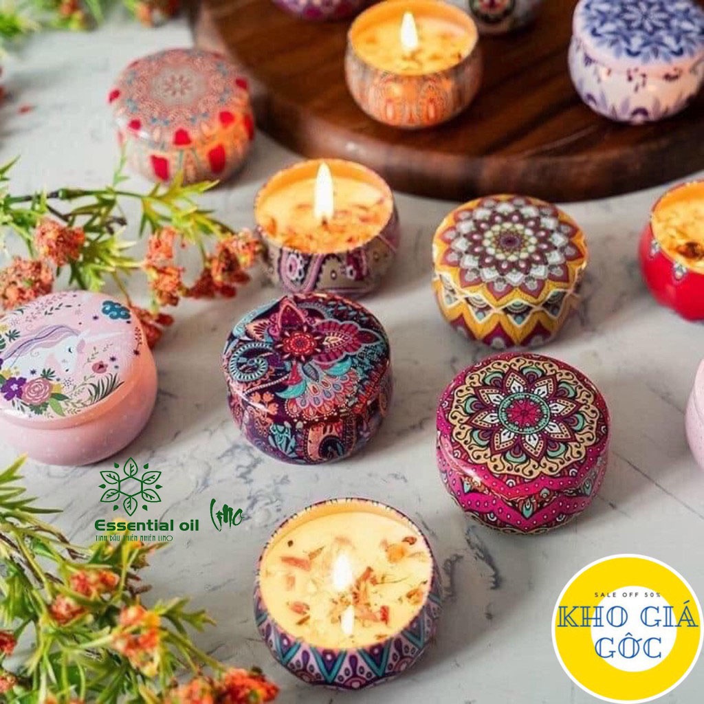 Nến thơm hộp thiếc hoa khô hoa văn đẹp