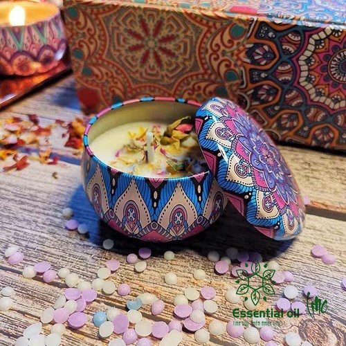 Giới thiệu Nến thơm hộp thiếc hoa khô hoa văn đẹp