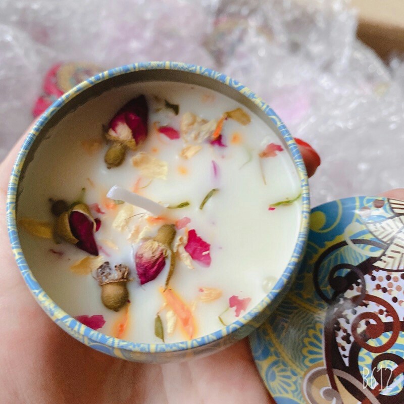 Nến thơm hộp thiếc hương hoa khô phong cách Châu Âu