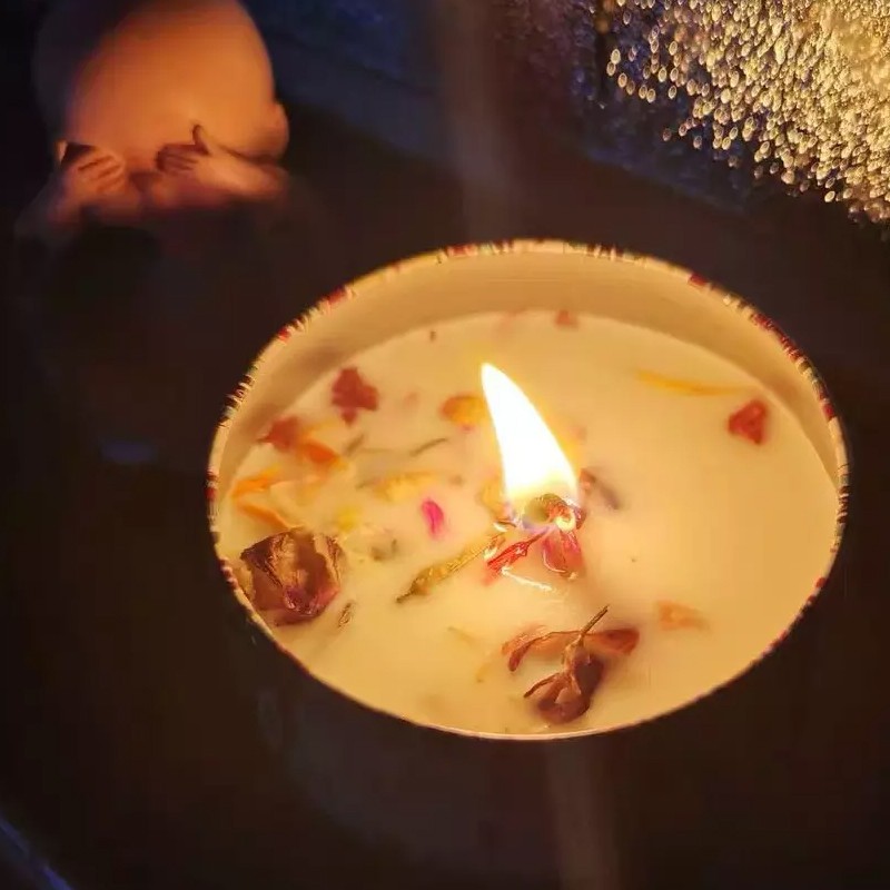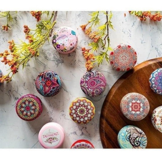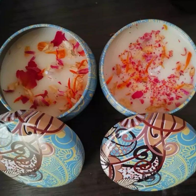 - Mỗi lọ nến 80g. Kích thước 6,3*4,2cm. Đựng trong hộp thiếc hoa văn rất đẹp và an toàn.
