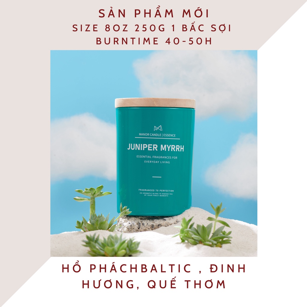 Giới thiệu [Mã LIFE20KALL giảm 10% đơn 50K] Nến thơm JUNIPER MYRRH cao cấp không khói an toàn, sáp cọ size 8oz 1 bấc 250gram