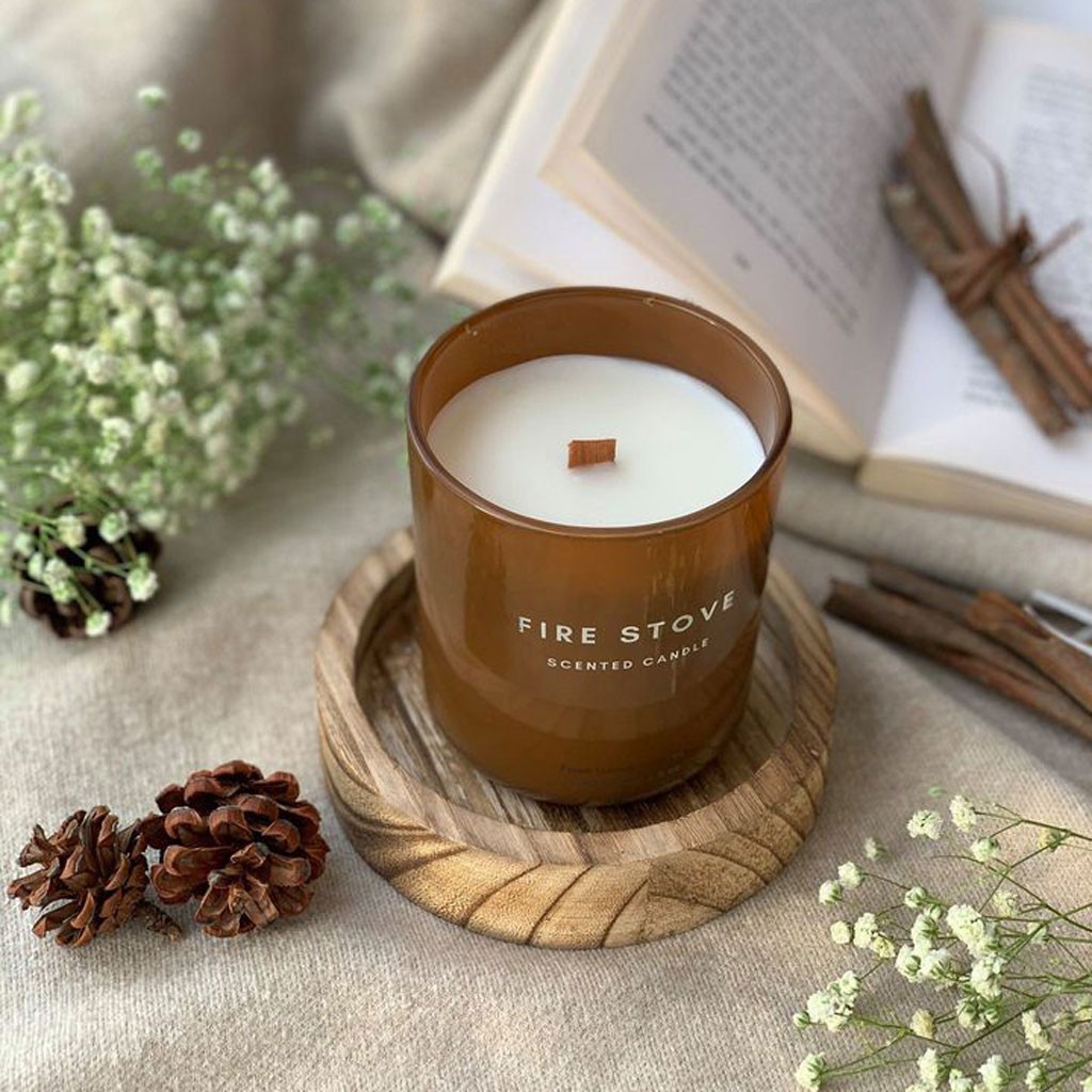 Nhà cửa & Đời sống > Trang trí nhà cửa > Nến & đồ đựng nến || Nến thơm Lumos FIRE STOVE (tông gỗ, ấm) 70 giờ đốt, Nến sáp tự nhiên an toàn không khói - NT210Còn hàng
