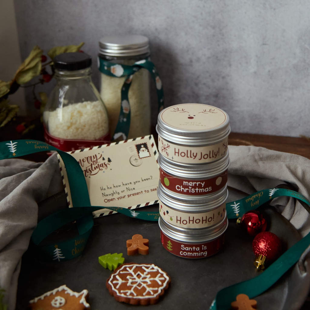 Nến thơm Merry Christmas hũ thiếc 80g - Nến thơm sáp đậu nành Chia.er