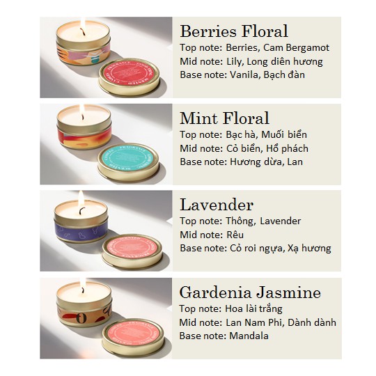 Nến thơm mini hộp thiếc trang trí phòng ngủ sáp đậu nành sáp dừa thiên thiên an toàn không khóiNến sử dụng sáp đậu nành + sáp dừa tinh dầu an toàn không hóa chất tổng hợp, sáp nến đặc mịn, cháy lâu, không khói