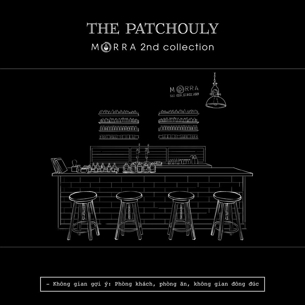 Mở ra một không gian tràn ngập hương vị miên man của đất xen lẫn chút ngọt và cay nhẹ được giải phóng từ Hoắc Hương đầy đặc trưng. Ai cũng sẽ cảm nhận được hoàn toàn sự quyến rũ của The Patchouly khi vị rượu vang chát nhẹ cùng sự the mát từ bạc hà ngân lên phía sau giai điệu mạnh mẽ của Hoắc Hương. Sự pha trộn này cũng chính là nền tảng vững chắc khiến The Patchouly phù hợp với cả những không gian đông đúc, náo nhiệtMùi hương chủ đạo: Bạc hà, Hoắc hương, Rượu vang.