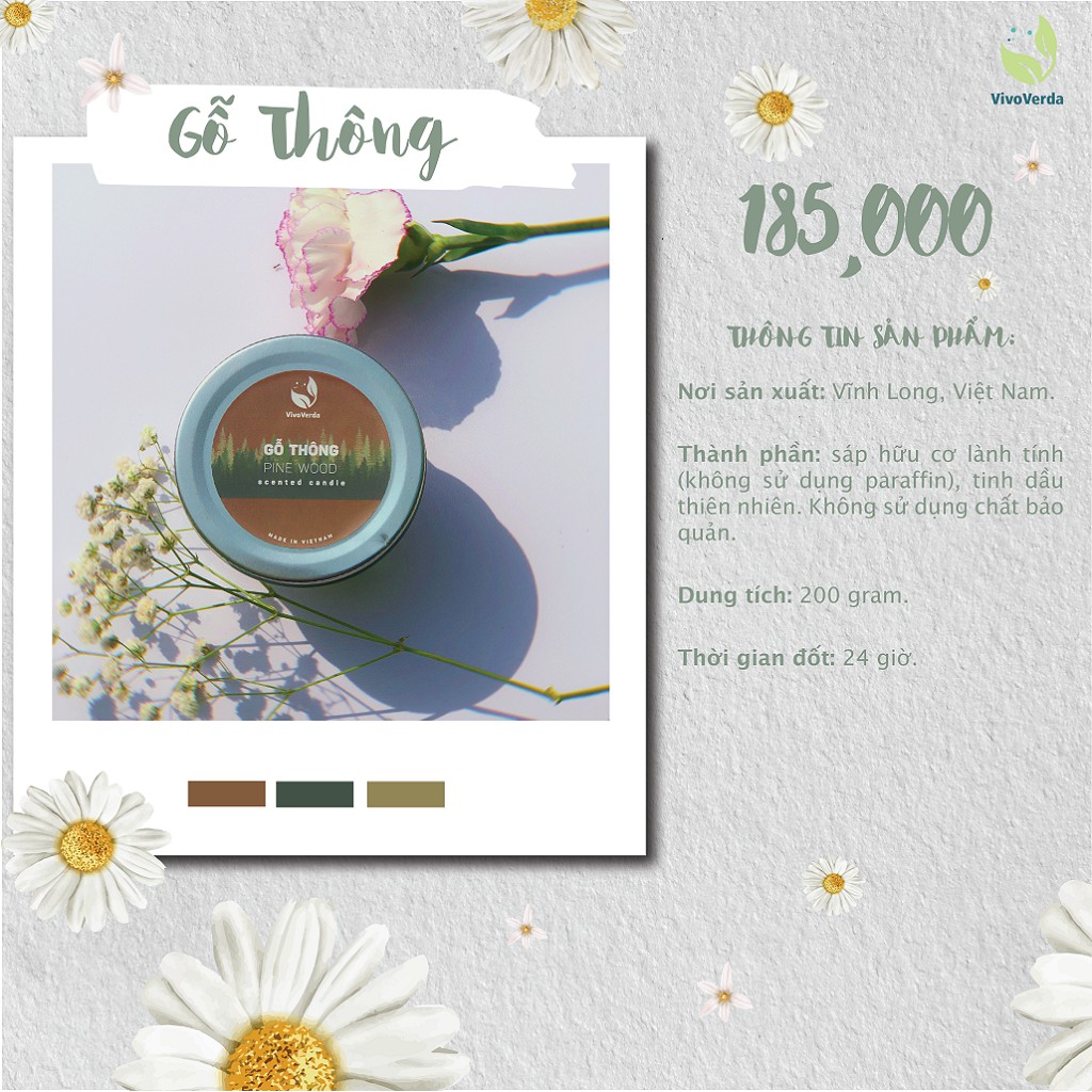 Giới thiệu NẾN THƠM MÙI HƯƠNG GỖ THÔNG 200g/VIVOVERDA SCENTED CANDLE PINE WOOD SCENT 200g